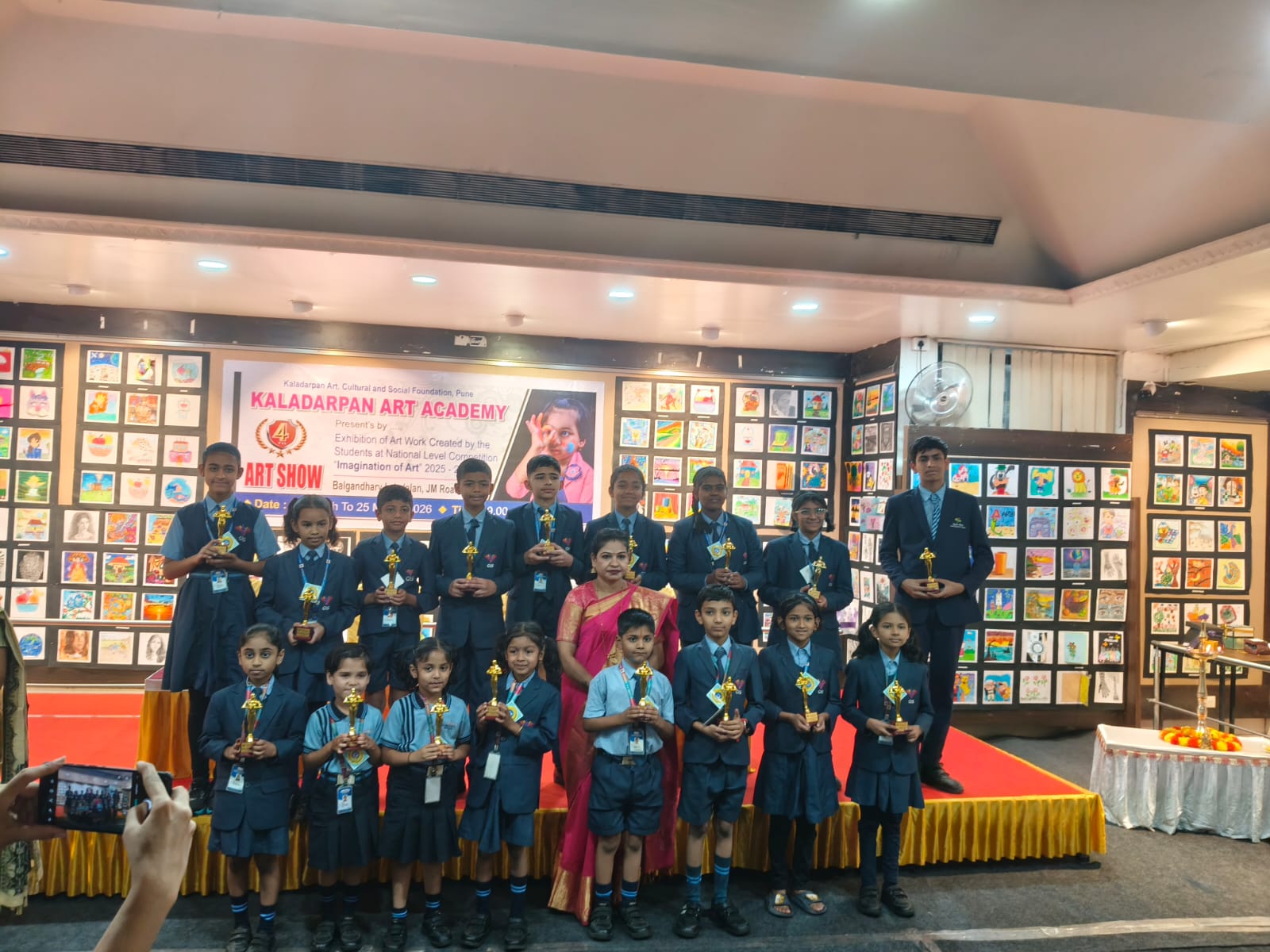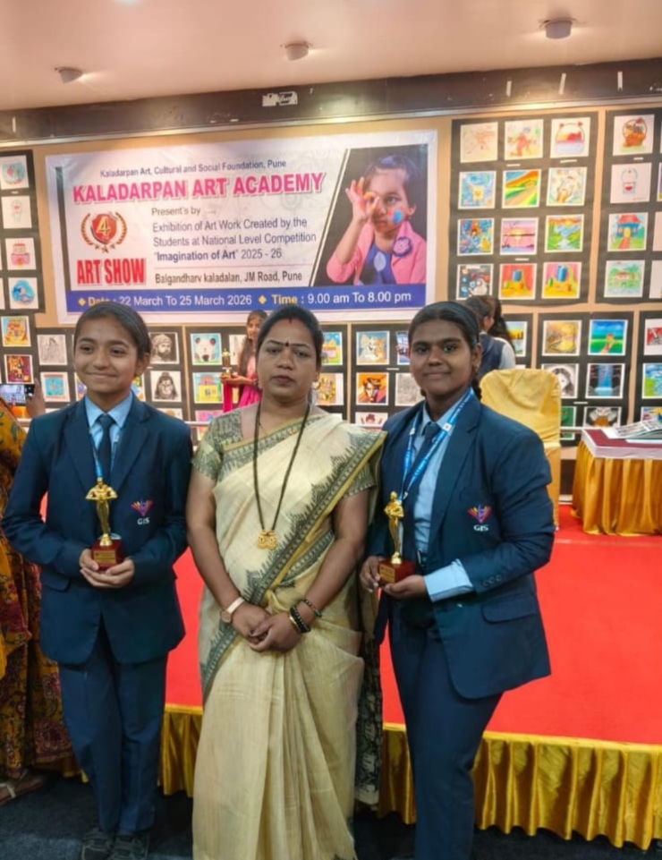We are proud to share that 19 students of Ganesh International School, Chikhali were honored at the National Level Art Competition by Kaladarpan Art Academy 🎨✨.
